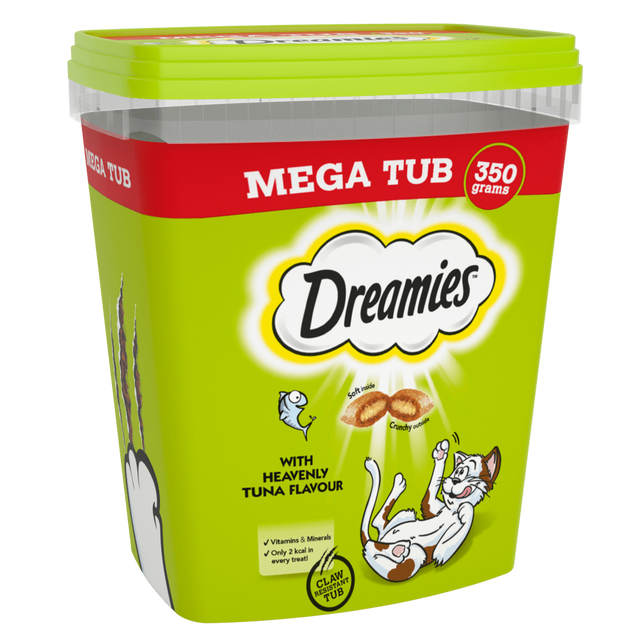 DREAMIES™ cat treats are packed full of things cats love. Share moments with your feline friend with these dual-texture treats with an enticingly crunchy outside and a soft inside. DREAMIES™ with Heavenly Tuna flavour contains vitamins and minerals, at just 2 calories per treat. So go on, give the bag a shake and watch your cat come running!
