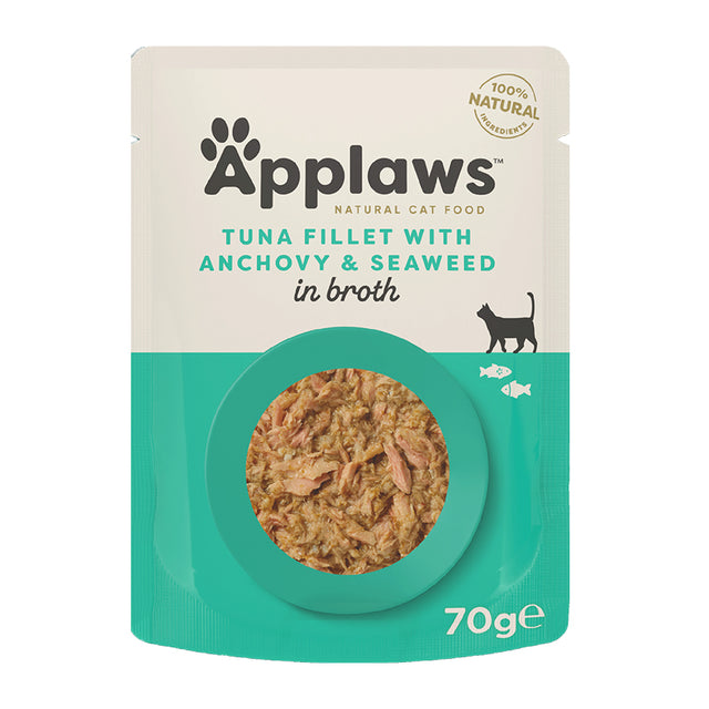 Applaws Cat - Broth Pouches Tuna Fillet With Anchovy & Seaweed 12x70g
