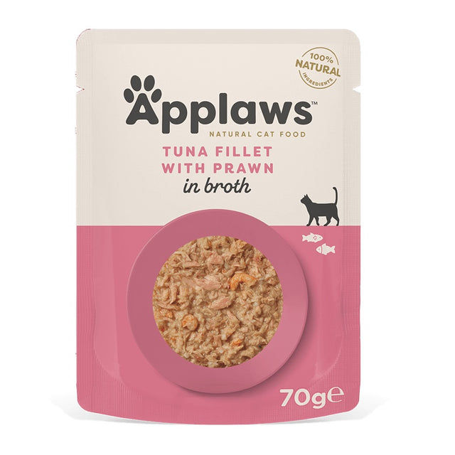 Applaws Cat - Broth Pouches Tuna Fillet With Pacific Prawn 12x70g