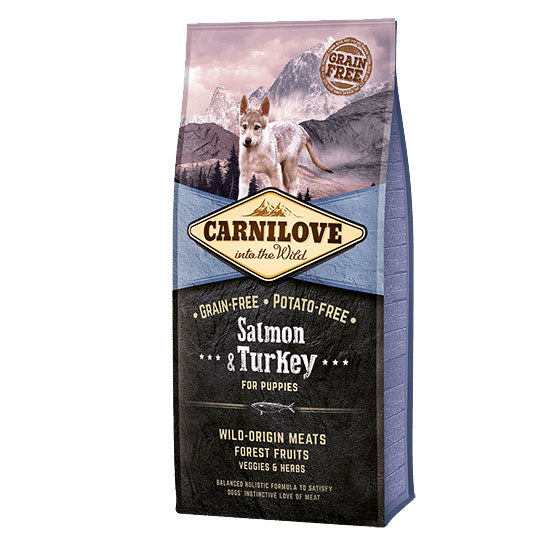 CARNILOVE Salmon & Turkey (Puppy) is a Grain-free and Potato-free formula that is suitable for puppies of all breeds (Aged 1 to 12 months old).