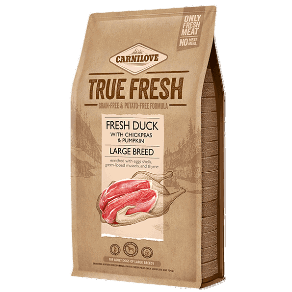 CARNILOVE True Fresh Duck Large Breed Adult is a complete food for adult large breed dogs 25kg and above.