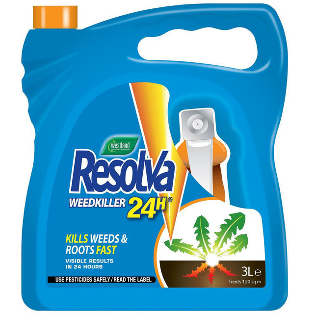 Resolva Weedkiller 24H Ready to Use is an efficient weedkiller. The formula breaks down naturally and degrades by micro-organisms / microbes in the soil. Its systemic action controls annual and deep-rooted perennial weeds such as Grasses, Couch grass, Docks, Thistles, Nettles and Dandelions as well as Bindweed and many more.