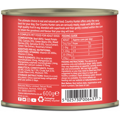 Natures Menu Dog - Country Hunter Cans Beef with Superfoods 6x600g