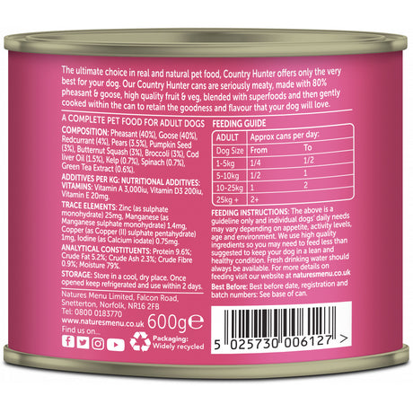 Natures Menu Dog - Country Hunter Cans Pheasant & Goose 6x600g