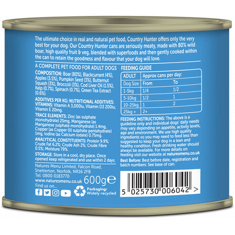 Natures Menu Dog - Country Hunter Cans Wild Boar 6x600g