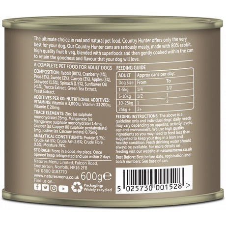 Natures Menu Dog - Country Hunter Cans Rabbit 6x600g