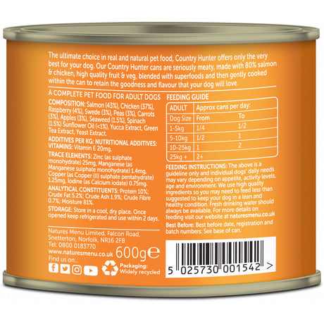 Natures Menu Dog - Country Hunter Cans Salmon & Chicken with Superfoods 6x600g