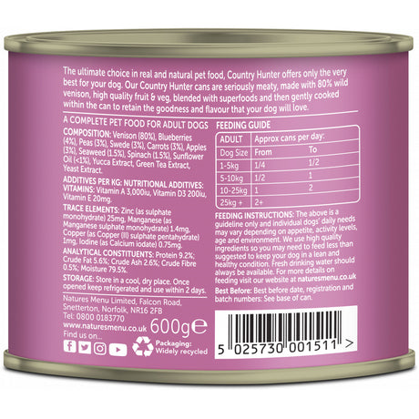 Natures Menu Dog - Country Hunter Cans Venison & Blueberry 6x600g