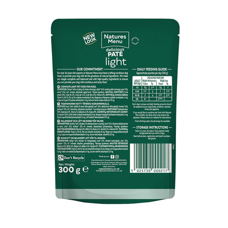 Natures Menu Dog - Light Adult Pouch Box Chicken With Rabbit 8x300g