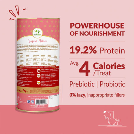 Pawfect Yogurt Melties Pre and Probiotic Dog Treats with Carrot, Flaxseed, Pea & Sweet Potato 38g