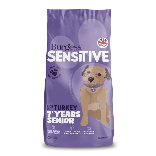 Burgess Sensitive is a dry dog food made without many of the typical ingredients that can cause sensitivities for mature dogs aged 7 and over.