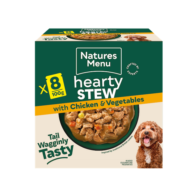 Inspired by traditional British cuisine, our Chicken & Vegetable Hearty Stew is a mouth-watering meal your dog will tuck into with delight. Made with no added colours and preservatives. It’s tail-waggingly tasty!