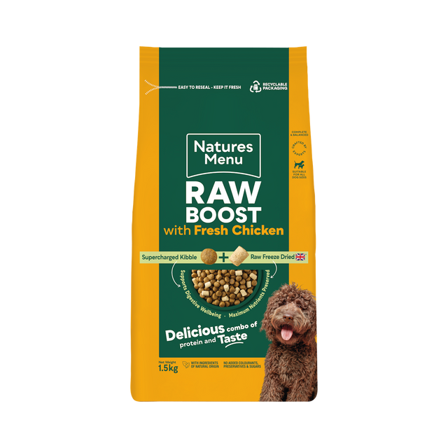 For over 40 years the experts at Natures Menu have been crafting nutritious pet food, to give your dog all the goodness of natural ingredients. Proudly made in the UK with high-quality ingredients, our Raw Boost recipes give your dog a delicious combination of protein and flavour.